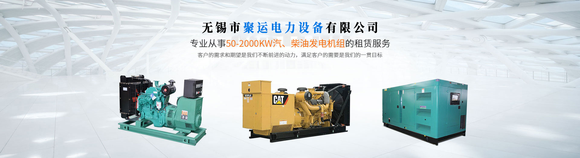 无锡市聚运电力设备有限公司专业从事50-2000KW汽、柴油发电机组的租赁服务。立足长三角,业务主营江苏,上海,浙江等地,现有进口康明斯,卡特、三菱,沃尔沃,电友,和各类国产发电机一百余台,可供客户随意选择。同时,景超根据用户不同的需求量身定制不同的电力解决方案,电力供应保障充足,为各项目工地施工、展览活动、消防备用、企业避峰、短期自备发电的首选。